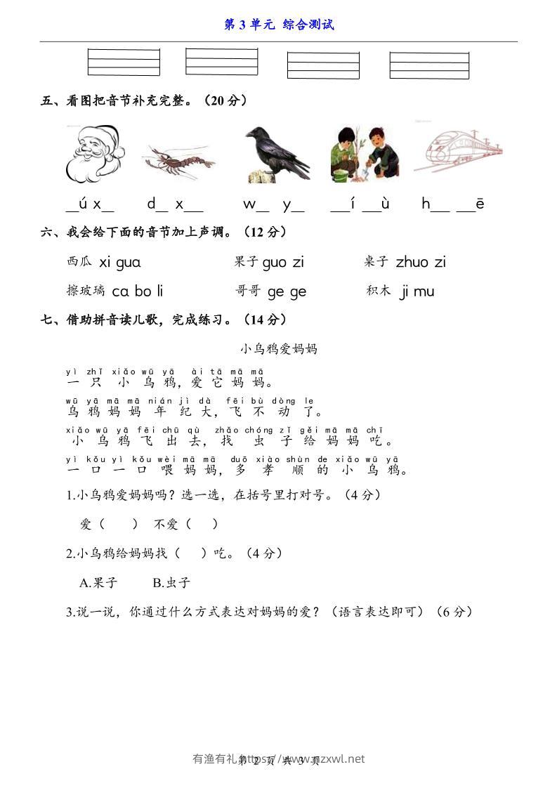一上语文-第3单元(测试卷)有渔有礼关注私信04612 ——预览已结束,还剩1页未读——开通会员后可免费下载高清完整文档 一上语文-第3单元(测试卷)此内容为付费资源,请付费后查看¥9.9¥29.8会员免费合伙人免费立即购买您当前未登录!建议登陆后购买,可保存购买订单格式pdf页数3 页大小258.88 KB付费资源© 版权声明文章版权归作者所有,未经允许请勿转载。THE END小学语文 喜欢就支持一下吧点赞12 分享QQ空间微博QQ好友海报分享复制链接收藏