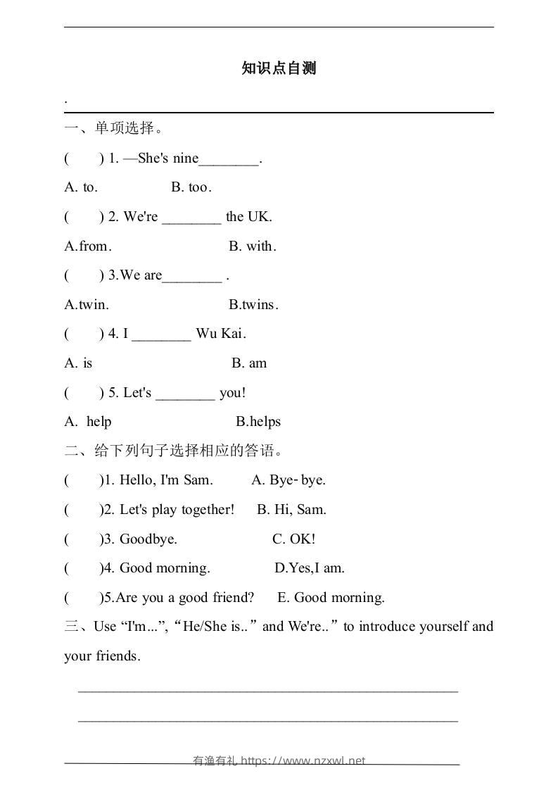三上英语-Unit1Let’sbefriends!知识总结+练习(含答案)有渔有礼关注私信02512 ——预览已结束,还剩1页未读——开通会员后可免费下载高清完整文档 三上英语-Unit1Let’sbefriends!知识总结+练习(含答案)此内容为付费资源,请付费后查看¥9.9¥29.8会员免费合伙人免费立即购买您当前未登录!建议登陆后购买,可保存购买订单格式doc页数3 页大小26.50 KB付费资源© 版权声明文章版权归作者所有,未经允许请勿转载。THE END小学英语 喜欢就支持一下吧点赞12 分享QQ空间微博QQ好友海报分享复制链接收藏