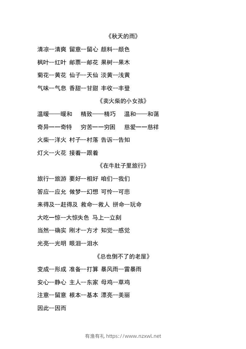 三上语文-语文近义词和反义词汇总有渔有礼关注私信02111 ——预览已结束,还剩7页未读——开通会员后可免费下载高清完整文档 三上语文-语文近义词和反义词汇总此内容为付费资源,请付费后查看¥9.8¥29.8会员免费合伙人免费立即购买您当前未登录!建议登陆后购买,可保存购买订单格式docx页数9 页大小19.92 KB付费资源© 版权声明文章版权归作者所有,未经允许请勿转载。THE END小学语文 喜欢就支持一下吧点赞11 分享QQ空间微博QQ好友海报分享复制链接收藏