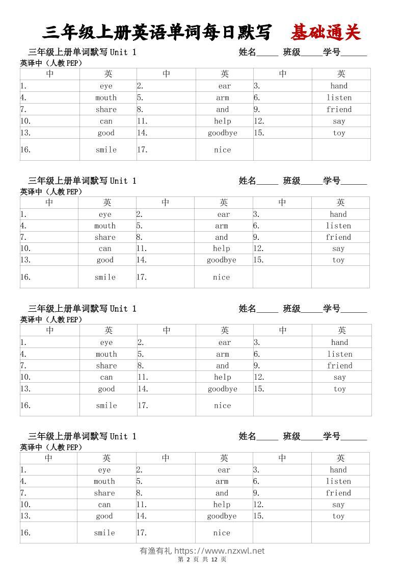 三年级上册英语单词每日默写基础通关有渔有礼关注私信0216 ——预览已结束,还剩10页未读——开通会员后可免费下载高清完整文档 三年级上册英语单词每日默写基础通关此内容为付费资源,请付费后查看¥9.8¥29.8会员免费合伙人免费立即购买您当前未登录!建议登陆后购买,可保存购买订单格式pdf页数12 页大小252.81 KB付费资源© 版权声明文章版权归作者所有,未经允许请勿转载。THE END小学英语 喜欢就支持一下吧点赞6 分享QQ空间微博QQ好友海报分享复制链接收藏