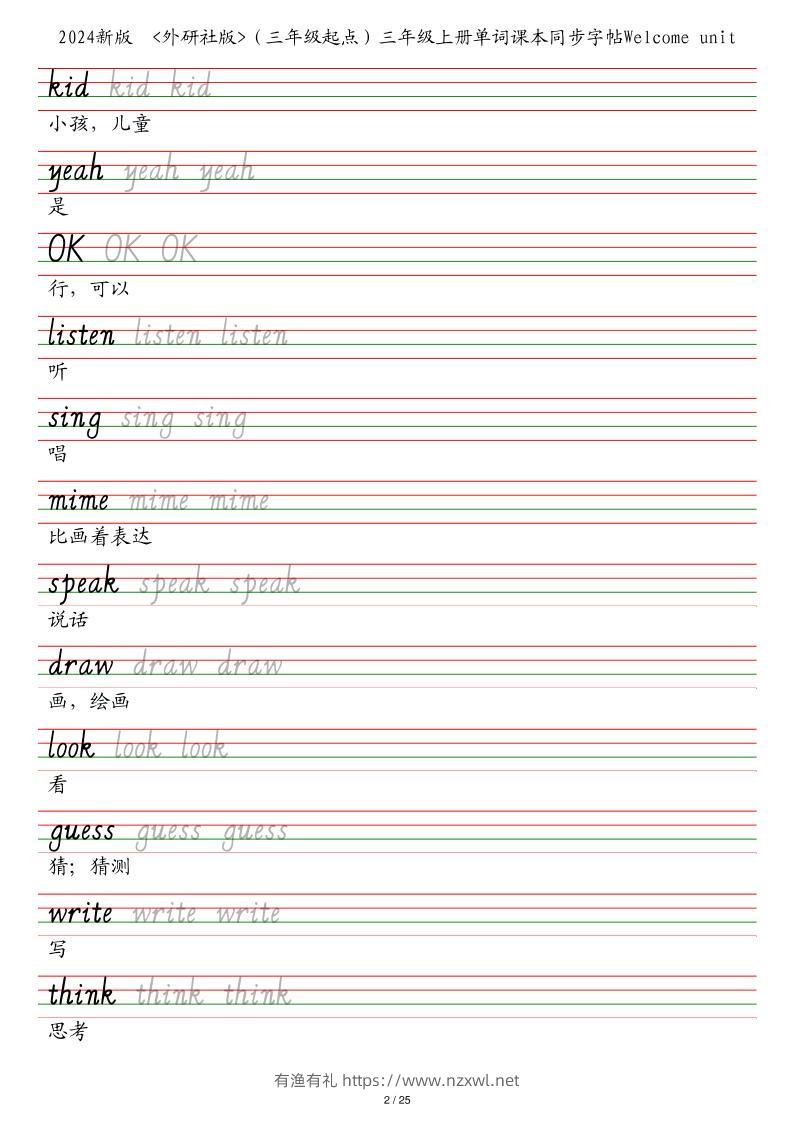 25秋外研社版(三年级起点)三年级上册英语单词课本同步字帖有渔有礼关注私信05012 ——预览已结束,还剩23页未读——开通会员后可免费下载高清完整文档 25秋外研社版(三年级起点)三年级上册英语单词课本同步字帖此内容为付费资源,请付费后查看¥8.8¥29.8会员免费合伙人免费立即购买您当前未登录!建议登陆后购买,可保存购买订单格式pdf页数25 页大小917.83 KB付费资源© 版权声明文章版权归作者所有,未经允许请勿转载。THE END小学英语 喜欢就支持一下吧点赞12 分享QQ空间微博QQ好友海报分享复制链接收藏