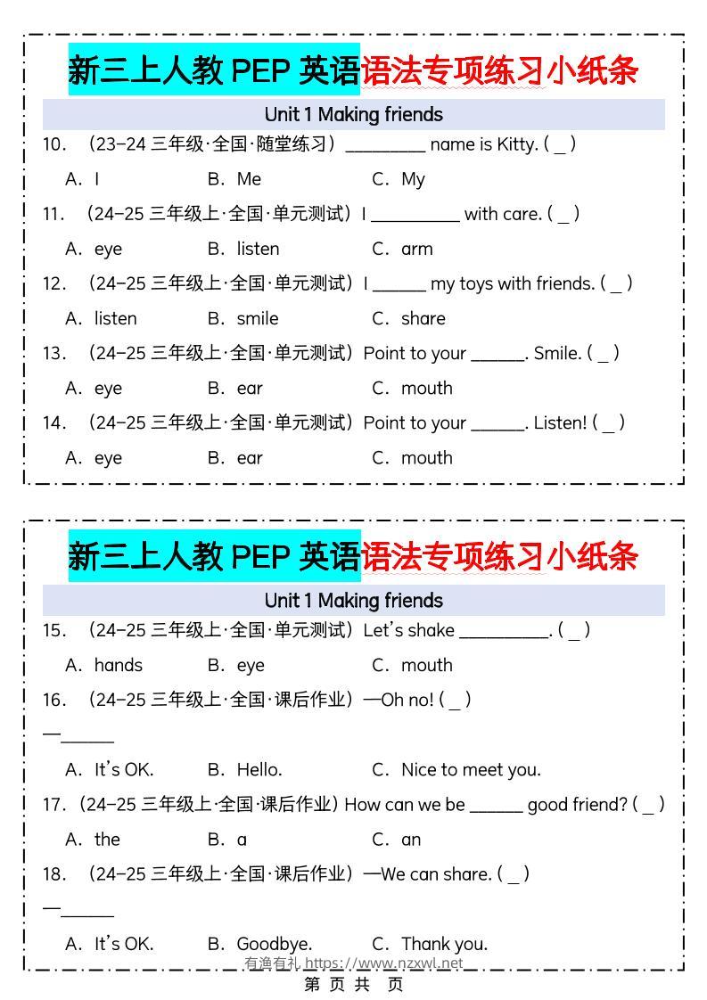 新三上人教PEP英语语法专项练习小纸条(含答案28页)有渔有礼关注私信04210 ——预览已结束,还剩26页未读——开通会员后可免费下载高清完整文档 新三上人教PEP英语语法专项练习小纸条(含答案28页)此内容为付费资源,请付费后查看¥8.8¥29.8会员免费合伙人免费立即购买您当前未登录!建议登陆后购买,可保存购买订单格式pdf页数28 页大小793.30 KB付费资源© 版权声明文章版权归作者所有,未经允许请勿转载。THE END小学英语 喜欢就支持一下吧点赞10 分享QQ空间微博QQ好友海报分享复制链接收藏