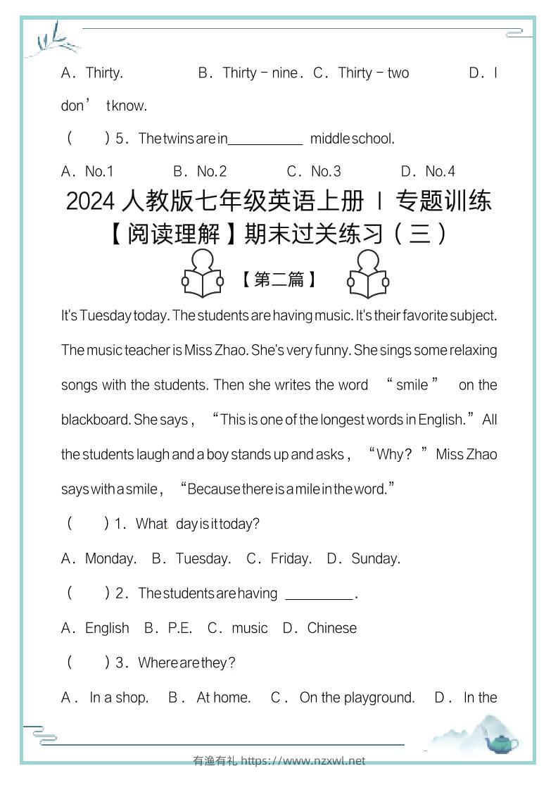 【2025秋新版】七年级英语上册:阅读理解期末复习过关练习(5篇)有渔有礼关注私信03513 ——预览已结束,还剩9页未读——开通会员后可免费下载高清完整文档 【2025秋新版】七年级英语上册:阅读理解期末复习过关练习(5篇)此内容为付费资源,请付费后查看¥9.9¥29.8会员免费合伙人免费立即购买您当前未登录!建议登陆后购买,可保存购买订单格式pdf页数11 页大小82.52 KB付费资源© 版权声明文章版权归作者所有,未经允许请勿转载。THE END初中英语 喜欢就支持一下吧点赞13 分享QQ空间微博QQ好友海报分享复制链接收藏