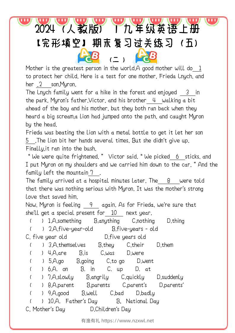 【2025秋新版】九年级英语上册:完形填空期末复习过关练习(5篇)有渔有礼关注私信04614 ——预览已结束,还剩9页未读——开通会员后可免费下载高清完整文档 【2025秋新版】九年级英语上册:完形填空期末复习过关练习(5篇)此内容为付费资源,请付费后查看¥9.8¥29.8会员免费合伙人免费立即购买您当前未登录!建议登陆后购买,可保存购买订单格式pdf页数11 页大小96.81 KB付费资源© 版权声明文章版权归作者所有,未经允许请勿转载。THE END初中英语 喜欢就支持一下吧点赞14 分享QQ空间微博QQ好友海报分享复制链接收藏