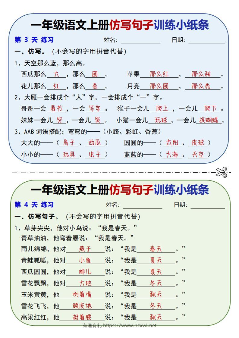 新一上语文仿写句子训练小纸条(含答案10页)有渔有礼关注私信0437 ——预览已结束,还剩8页未读——开通会员后可免费下载高清完整文档 新一上语文仿写句子训练小纸条(含答案10页)此内容为付费资源,请付费后查看¥9.9¥29.8会员免费合伙人免费立即购买您当前未登录!建议登陆后购买,可保存购买订单格式pdf页数10 页大小733.63 KB付费资源© 版权声明文章版权归作者所有,未经允许请勿转载。THE END小学语文 喜欢就支持一下吧点赞7 分享QQ空间微博QQ好友海报分享复制链接收藏