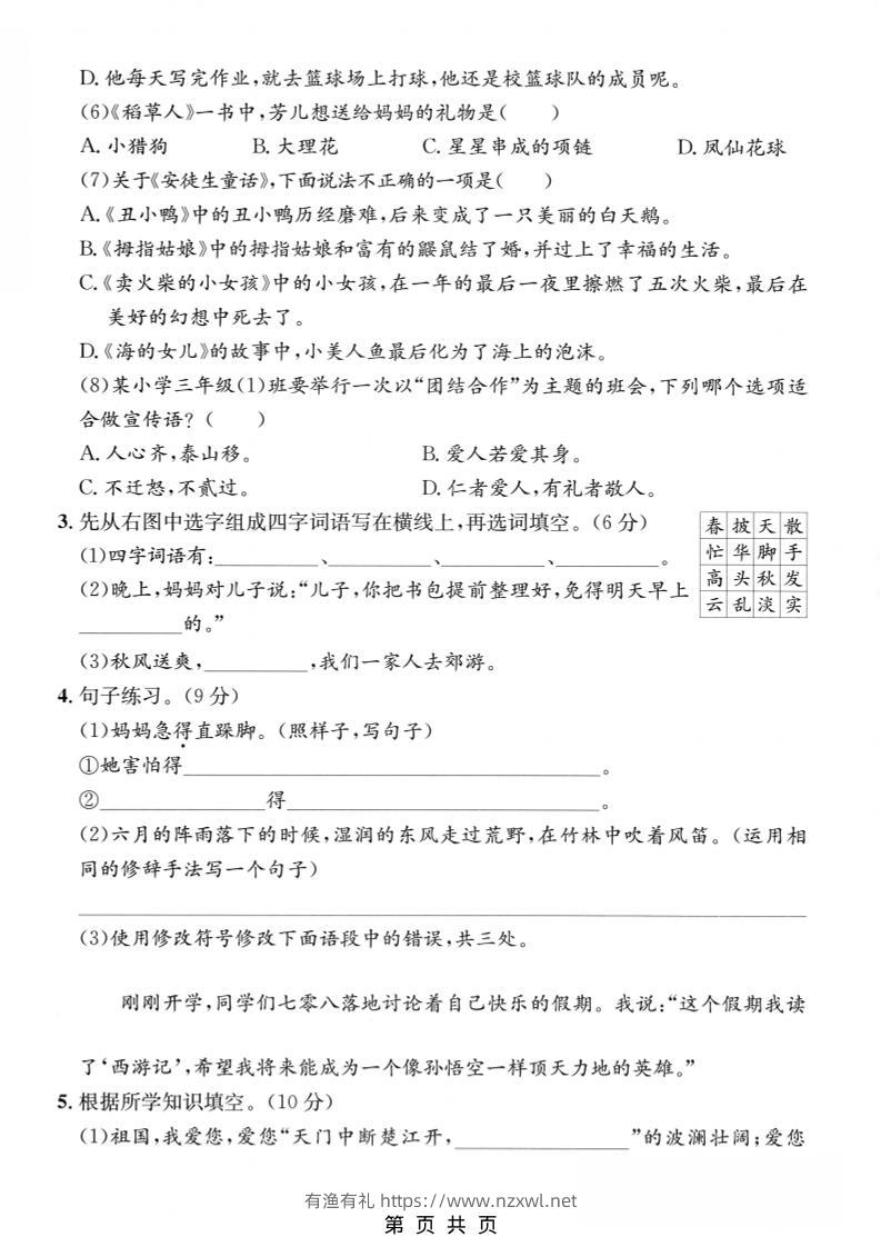 三年级上语文期末押题测试卷1有渔有礼关注私信05012 ——预览已结束,还剩3页未读——开通会员后可免费下载高清完整文档 三年级上语文期末押题测试卷1此内容为付费资源,请付费后查看¥8.8¥29.8会员免费合伙人免费立即购买您当前未登录!建议登陆后购买,可保存购买订单格式pdf页数5 页大小4.29 MB付费资源© 版权声明文章版权归作者所有,未经允许请勿转载。THE END小学语文 喜欢就支持一下吧点赞12 分享QQ空间微博QQ好友海报分享复制链接收藏