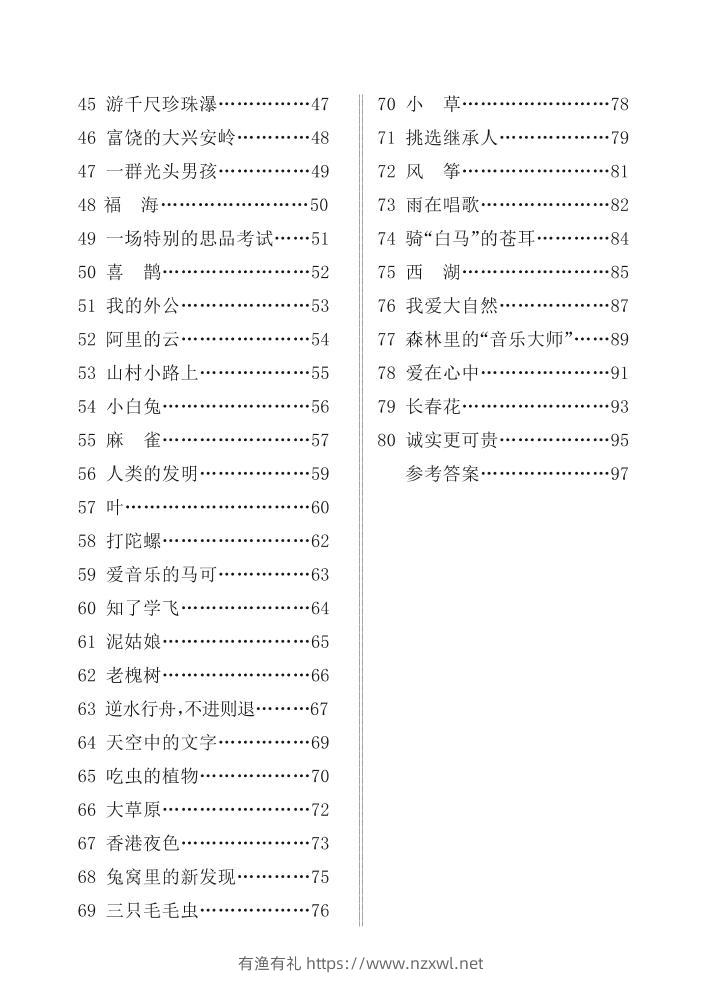 三上语文课外阅读80篇(含答案108页)有渔有礼关注私信0249 ——预览已结束,还剩106页未读——开通会员后可免费下载高清完整文档 三上语文课外阅读80篇(含答案108页)此内容为付费资源,请付费后查看¥9.8¥29.8会员免费合伙人免费立即购买您当前未登录!建议登陆后购买,可保存购买订单格式pdf页数108 页大小1.92 MB付费资源© 版权声明文章版权归作者所有,未经允许请勿转载。THE END小学语文 喜欢就支持一下吧点赞9 分享QQ空间微博QQ好友海报分享复制链接收藏