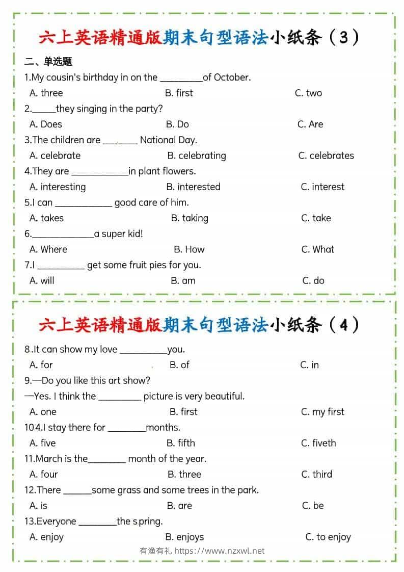 六年级上英语期末句型语法小纸条人教精通版有渔有礼关注私信03311 ——预览已结束,还剩6页未读——开通会员后可免费下载高清完整文档 六年级上英语期末句型语法小纸条人教精通版此内容为付费资源,请付费后查看¥9.8¥29.8会员免费合伙人免费立即购买您当前未登录!建议登陆后购买,可保存购买订单格式pdf页数8 页大小134.46 KB付费资源© 版权声明文章版权归作者所有,未经允许请勿转载。THE END小学英语 喜欢就支持一下吧点赞11 分享QQ空间微博QQ好友海报分享复制链接收藏