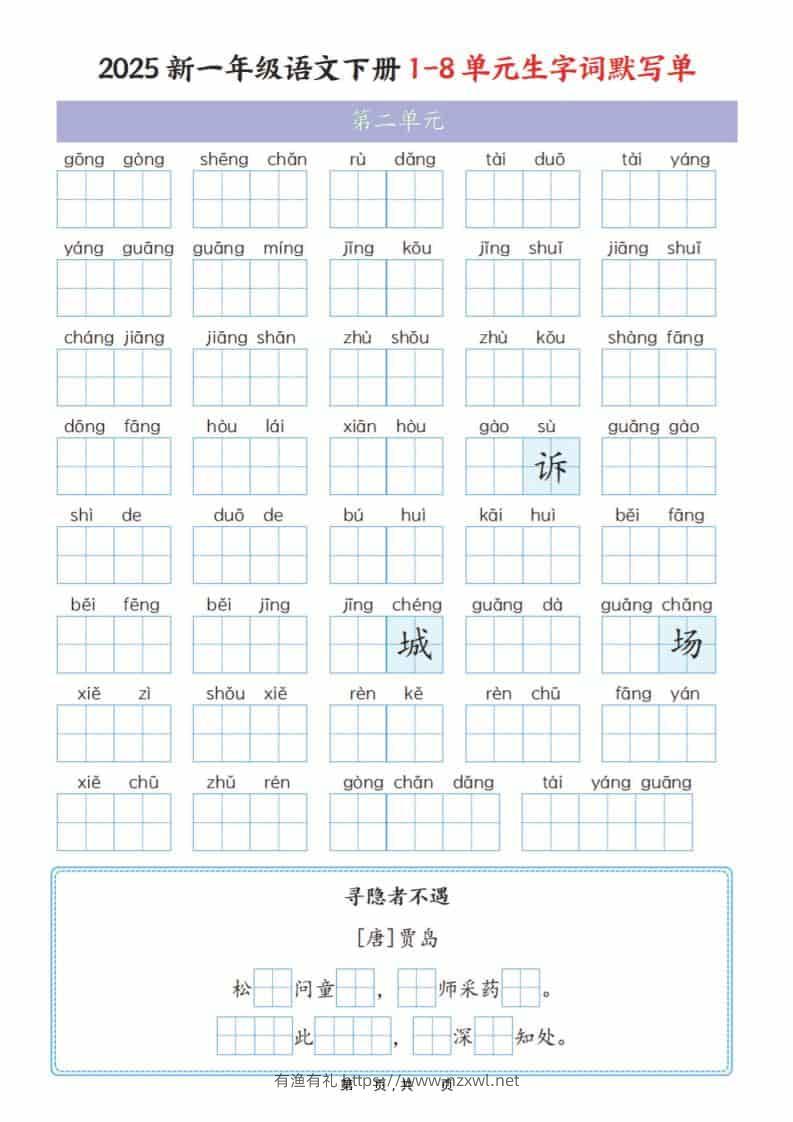 一年级下语文1-8单元生字词默写单(衔接版)有渔有礼关注私信0525 ——预览已结束,还剩14页未读——开通会员后可免费下载高清完整文档 一年级下语文1-8单元生字词默写单(衔接版)此内容为付费资源,请付费后查看¥8.8¥29.8会员免费合伙人免费立即购买您当前未登录!建议登陆后购买,可保存购买订单格式pdf页数16 页大小9.91 MB付费资源© 版权声明文章版权归作者所有,未经允许请勿转载。THE END小学语文 喜欢就支持一下吧点赞5 分享QQ空间微博QQ好友海报分享复制链接收藏