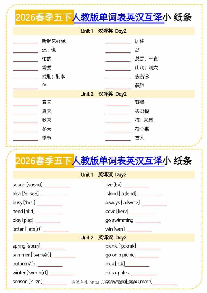 五年级下英语单词英汉互译小纸条《人教版PEP》有渔有礼关注私信03813 ——预览已结束,还剩5页未读——开通会员后可免费下载高清完整文档 五年级下英语单词英汉互译小纸条《人教版PEP》此内容为付费资源,请付费后查看¥8.8¥29.8会员免费合伙人免费立即购买您当前未登录!建议登陆后购买,可保存购买订单格式pdf页数7 页大小249.28 KB付费资源© 版权声明文章版权归作者所有,未经允许请勿转载。THE END小学英语 喜欢就支持一下吧点赞13 分享QQ空间微博QQ好友海报分享复制链接收藏