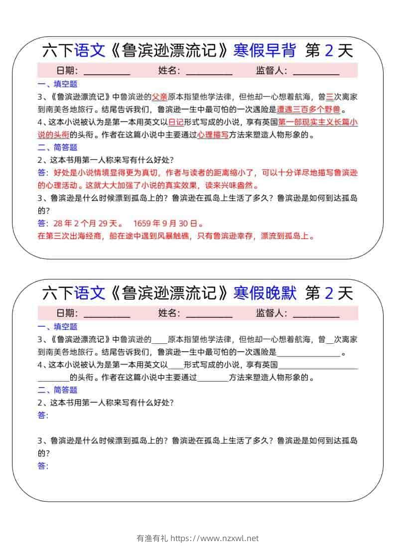 六年级下语文《鲁滨逊漂流记》寒假早背晚默(15天)有渔有礼关注私信03412 ——预览已结束,还剩13页未读——开通会员后可免费下载高清完整文档 六年级下语文《鲁滨逊漂流记》寒假早背晚默(15天)此内容为付费资源,请付费后查看¥8.8¥29.8会员免费合伙人免费立即购买您当前未登录!建议登陆后购买,可保存购买订单格式pdf页数15 页大小464.90 KB付费资源© 版权声明文章版权归作者所有,未经允许请勿转载。THE END小学语文 喜欢就支持一下吧点赞12 分享QQ空间微博QQ好友海报分享复制链接收藏
