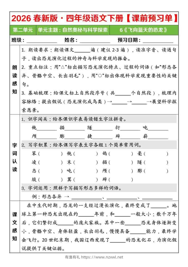 四年级下语文26春第二单元课前预习单有渔有礼关注私信0407 ——预览已结束,还剩3页未读——开通会员后可免费下载高清完整文档 四年级下语文26春第二单元课前预习单此内容为付费资源,请付费后查看¥9.9¥29.8会员免费合伙人免费立即购买您当前未登录!建议登陆后购买,可保存购买订单格式pdf页数5 页大小584.62 KB付费资源© 版权声明文章版权归作者所有,未经允许请勿转载。THE END小学语文 喜欢就支持一下吧点赞7 分享QQ空间微博QQ好友海报分享复制链接收藏