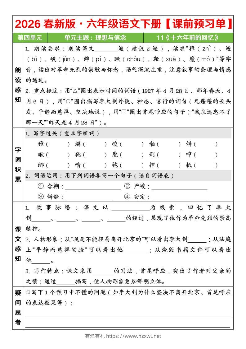 六年级下语文26春第四单元课前预习单有渔有礼关注私信04115 ——预览已结束,还剩3页未读——开通会员后可免费下载高清完整文档 六年级下语文26春第四单元课前预习单此内容为付费资源,请付费后查看¥9.8¥29.8会员免费合伙人免费立即购买您当前未登录!建议登陆后购买,可保存购买订单格式pdf页数5 页大小547.19 KB付费资源© 版权声明文章版权归作者所有,未经允许请勿转载。THE END小学语文 喜欢就支持一下吧点赞15 分享QQ空间微博QQ好友海报分享复制链接收藏