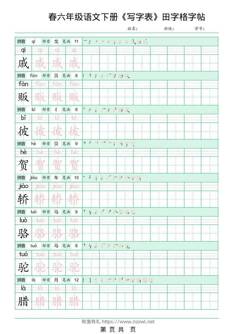 六年级下语文《写字表田字格字帖》拼音+部首+笔画+笔顺有渔有礼关注私信04511 ——预览已结束,还剩13页未读——开通会员后可免费下载高清完整文档 六年级下语文《写字表田字格字帖》拼音+部首+笔画+笔顺此内容为付费资源,请付费后查看¥8.8¥29.8会员免费合伙人免费立即购买您当前未登录!建议登陆后购买,可保存购买订单格式pdf页数15 页大小4.64 MB付费资源© 版权声明文章版权归作者所有,未经允许请勿转载。THE END小学语文 喜欢就支持一下吧点赞11 分享QQ空间微博QQ好友海报分享复制链接收藏