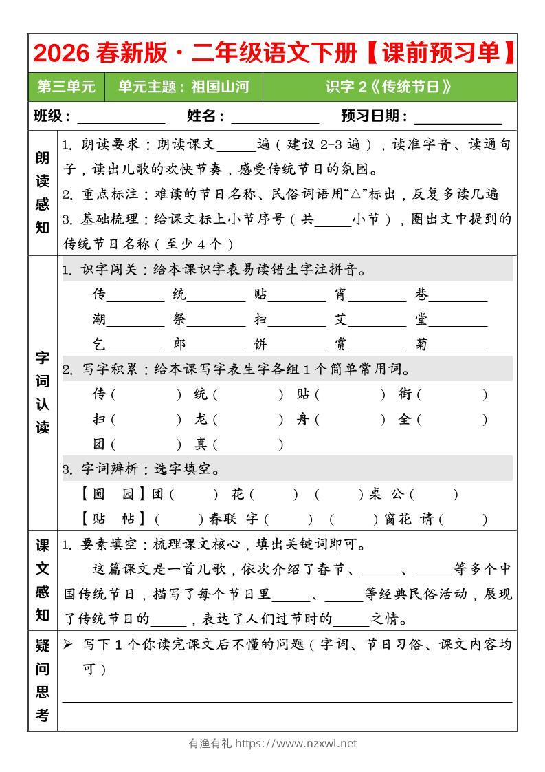 二年级下语文26春第三单元课前预习单有渔有礼关注私信0289 ——预览已结束,还剩3页未读——开通会员后可免费下载高清完整文档 二年级下语文26春第三单元课前预习单此内容为付费资源,请付费后查看¥8.8¥29.8会员免费合伙人免费立即购买您当前未登录!建议登陆后购买,可保存购买订单格式pdf页数5 页大小506.95 KB付费资源© 版权声明文章版权归作者所有,未经允许请勿转载。THE END小学语文 喜欢就支持一下吧点赞9 分享QQ空间微博QQ好友海报分享复制链接收藏