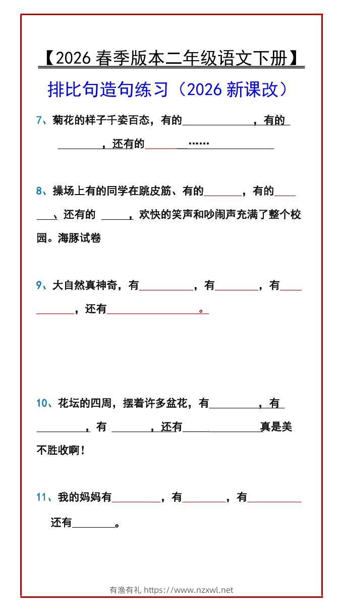 二年级下语文排比句造句练习有渔有礼关注私信0265 ——预览已结束,还剩2页未读——开通会员后可免费下载高清完整文档 二年级下语文排比句造句练习此内容为付费资源,请付费后查看¥8.8¥29.8会员免费合伙人免费立即购买您当前未登录!建议登陆后购买,可保存购买订单格式pdf页数4 页大小135.32 KB付费资源© 版权声明文章版权归作者所有,未经允许请勿转载。THE END小学语文 喜欢就支持一下吧点赞5 分享QQ空间微博QQ好友海报分享复制链接收藏