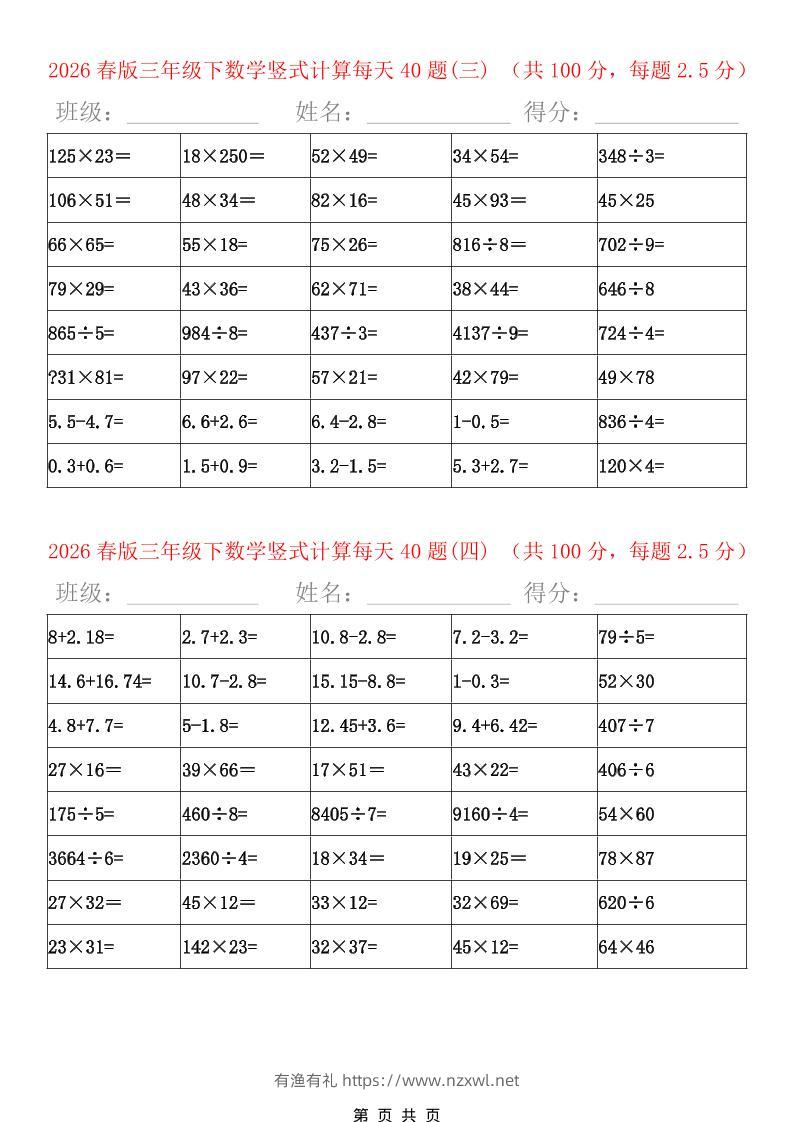 三年级下数学竖式计算题600题(每日一练)有渔有礼关注私信0345 ——预览已结束,还剩6页未读——开通会员后可免费下载高清完整文档 三年级下数学竖式计算题600题(每日一练)此内容为付费资源,请付费后查看¥8.8¥29.8会员免费合伙人免费立即购买您当前未登录!建议登陆后购买,可保存购买订单格式pdf页数8 页大小86.45 KB付费资源© 版权声明文章版权归作者所有,未经允许请勿转载。THE END小学数学 喜欢就支持一下吧点赞5 分享QQ空间微博QQ好友海报分享复制链接收藏