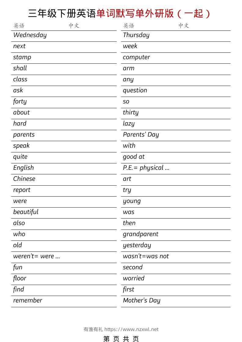 三年级下英语全册单词默写单《外研版(一起)》有渔有礼关注私信02915 ——预览已结束,还剩4页未读——开通会员后可免费下载高清完整文档 三年级下英语全册单词默写单《外研版(一起)》此内容为付费资源,请付费后查看¥9.9¥29.8会员免费合伙人免费立即购买您当前未登录!建议登陆后购买,可保存购买订单格式pdf页数6 页大小1.17 MB付费资源© 版权声明文章版权归作者所有,未经允许请勿转载。THE END小学英语 喜欢就支持一下吧点赞15 分享QQ空间微博QQ好友海报分享复制链接收藏