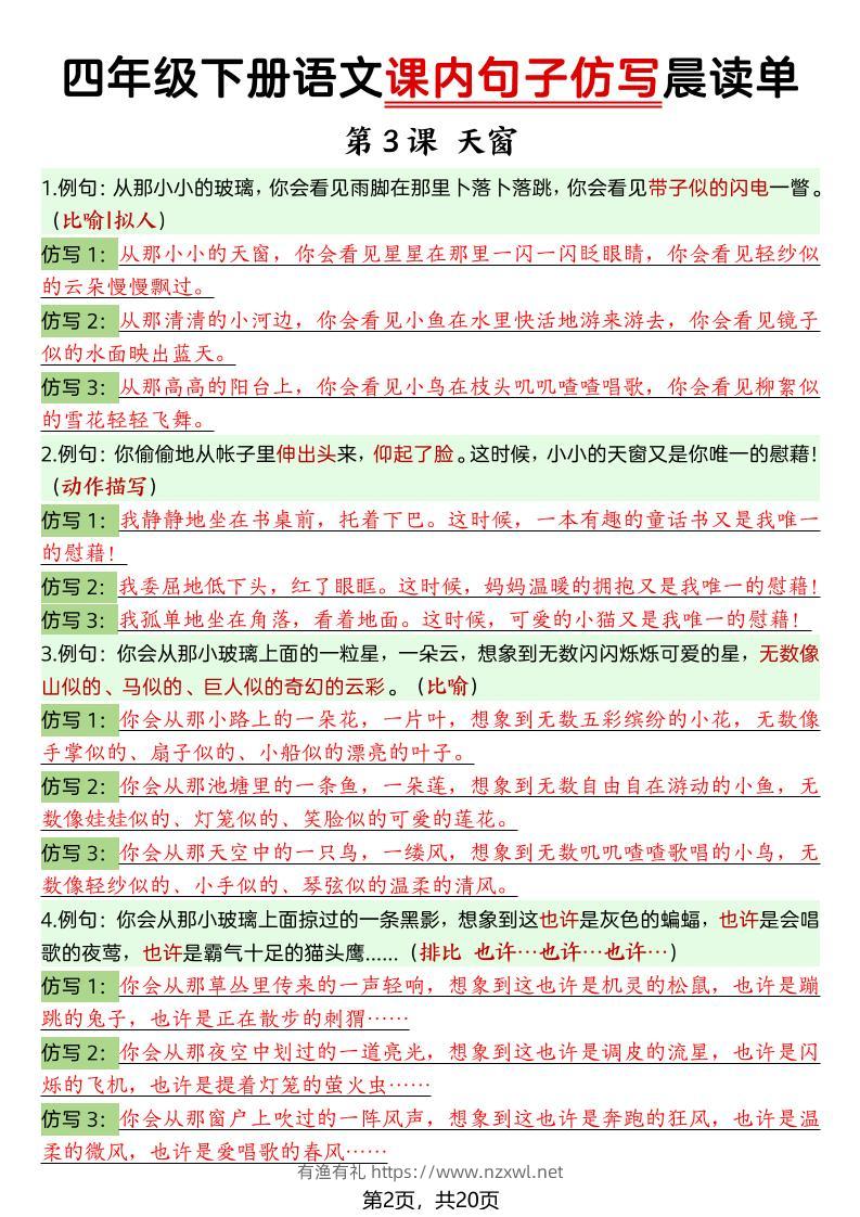 四年级下语文课内句子仿写晨读单20页有渔有礼关注私信0239 ——预览已结束,还剩18页未读——开通会员后可免费下载高清完整文档 四年级下语文课内句子仿写晨读单20页此内容为付费资源,请付费后查看¥9.8¥29.8会员免费合伙人免费立即购买您当前未登录!建议登陆后购买,可保存购买订单格式pdf页数20 页大小1.17 MB付费资源© 版权声明文章版权归作者所有,未经允许请勿转载。THE END小学语文 喜欢就支持一下吧点赞9 分享QQ空间微博QQ好友海报分享复制链接收藏